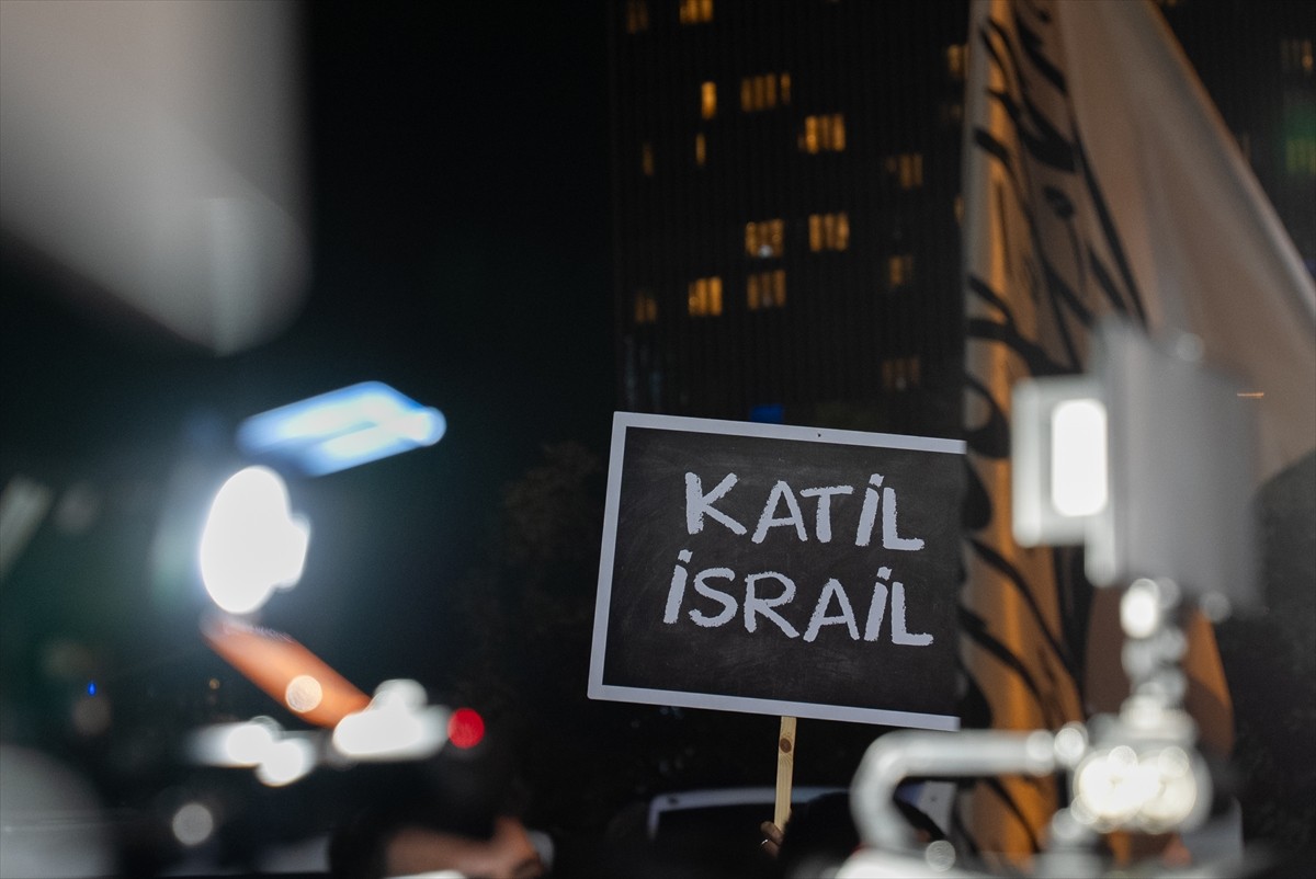 "İnsanlığın onuru Sumud Filosu", "Kudüs bizimdir, bizim kalacak", "Katil İsrail, işbirlikçi ABD" ve "İşte burası katillerin yuvası" sloganları atan gruptakiler, "Hamas seninleyiz" yazılı pankart açtı.