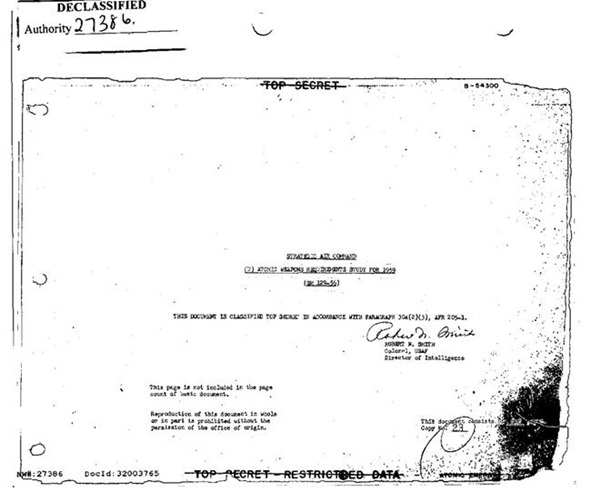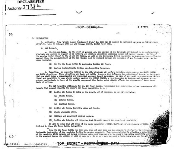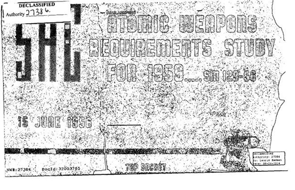 ABD'nin Stratejik Hava Komutanlığı tarafından 1956'da hazırlanan "1959 İçin Atomik Silahlar Gereksinimleri Araştırması" adlı çok gizli çalışmanın üzerindeki gizlilik perdesi Ulusal Arşivler ve Kayıtlar İdaresi tarafından kaldırıldı.