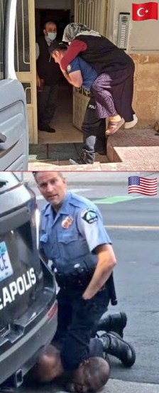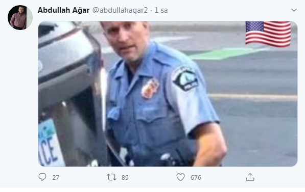ABD polisinin tutumu sosyal medyada da büyük tepki topladı. Terör ve Güvenlik Uzmanı Abdullah Ağar konu ile ilgili fotoğraf paylaştı.