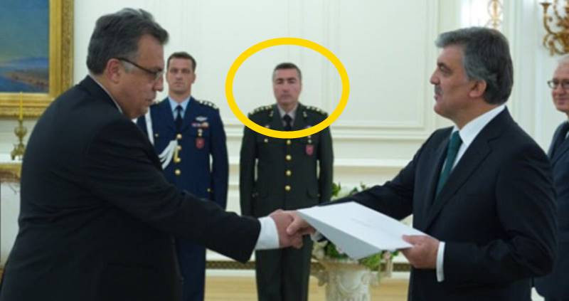 O gün, fotoğraf çekilirken, Gül ve Karlov'un arkasında bir FETÖ'cü de kadraja girmişti.