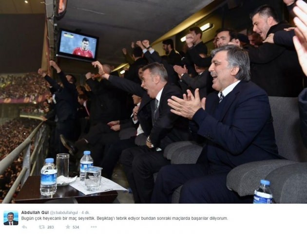 Gül, fotoğrafların altına, “Bugün çok heyecanlı bir maç seyrettik. Beşiktaş'ı tebrik ediyor bundan sonraki maçlarda başarılar diliyorum” yazdı.