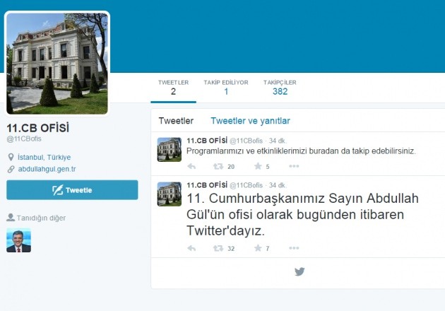 7 milyona yakın takipçisinin olduğu resmi Twitter hesabının yanında 'ofis' hesabı da açan 11.Cumhurbaşkanı Abdullah Gül, programlarını ve etkinlik takvimini bu adresinden paylaşacağını duyurdu.