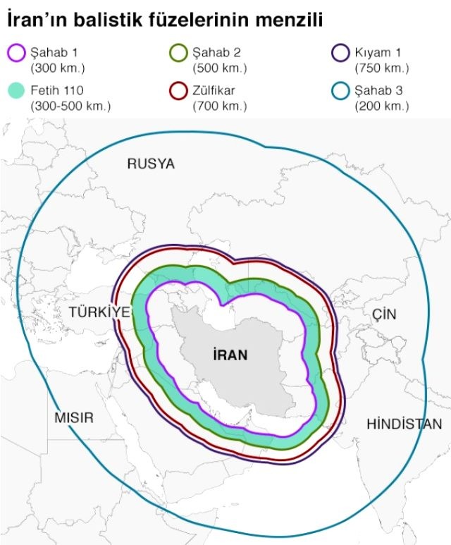 İran'ın elinde hali hazırda kendi imzasını taşıyan, farklı menzillerde 6 önemli füze bulunuyor. Bu füzelerden Şahab 3 en geniş menzile sahip. Füze Avrupa'ya kadar uzanan bir menzile sahip. Şahab 3 ile bilirlikte Kıyam ve Zülfikar füzeleri İsrail'i de hedefinin içinde tutuyor.