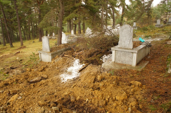 Yağlıca Mahallesi Muhtarı Halil Cırman da, şunları söyledi: “Mezarlığa geldiğimizde mezarı yarı açık vaziyette, mevtayı da 3-4 metre mezardan ileriye çıkardığını gördük. Emniyetten gelinip, burada gerekli tutanaklar tutuldu. Vahşi hayvanın yaptığı belli oldu, izleri toprak üzerinde belli oldu. Tekrar belediyeden yardım istedik. Belediyenin kepçesi ile mevtayı tekrar geri defnettik”