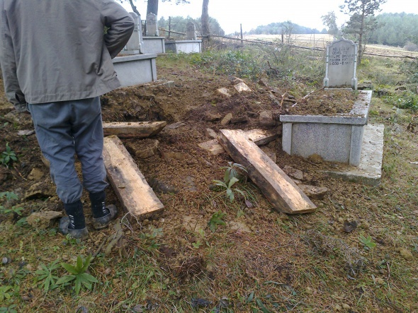İlk gördüğümüzde cenaze bakacak halde değildi. Karından başlanarak içerisine doğru bir elleşme vardı. Daha sonra haber vermemiz üzerine emniyetten görevli arkadaşlar buraya gelip, tutanaklarını tuttular. Belediyemize ait kepçe yardımıyla mezarı açıp, iki köylü arkadaşımızla birlikte cenazeyi yeniden kefenledikten sonra mezara geri defnettik.