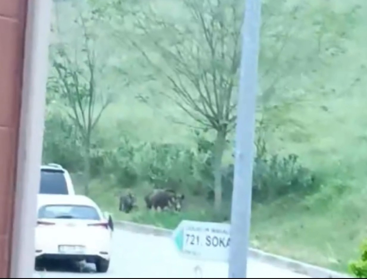 Bursa'da aç kalan domuz sürüsü yiyecek aramak için şehir merkezine indi. Durumu gören vatandaşlar ise domuzları tekrar ormanlık alana kovaladı.