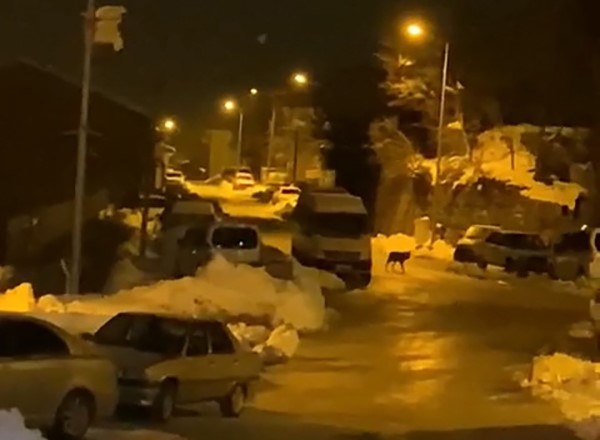 Caddelerde gezinen kurt vatandaşlar tarafından cep telefonu kamerasıyla görüntülendi. Bir süre dolanan kurt, daha sonra gecenin karanlığında uzaklaşarak gözden kayboldu.