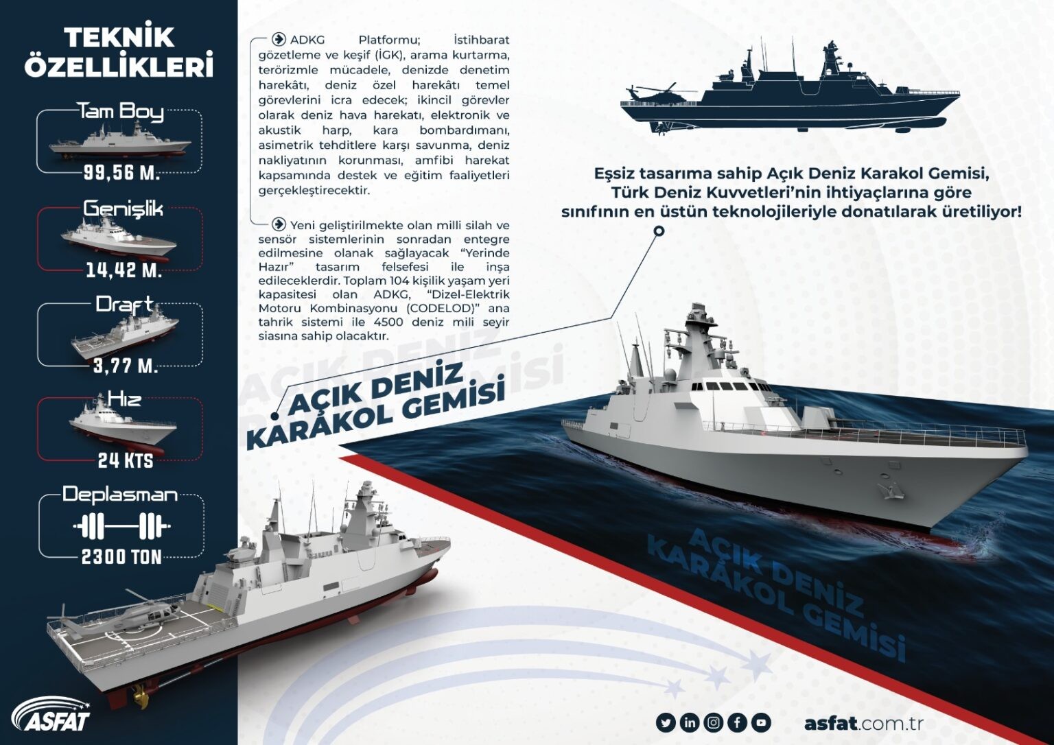 ASFAT tarafından 15. Uluslararası Savunma Sanayi Fuarı IDEF21’ded Açık Deniz Karakol Gemisi’nin (ADKG) tasarımı ek silahlı konfigürasyonuyla sergilenmişti. Fuarda sergilenen ek silahlı konfigürasyon;