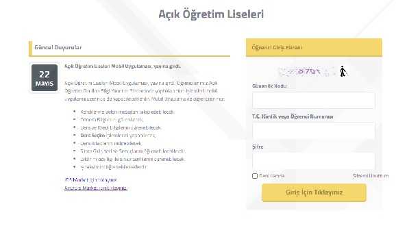AÇIK LİSE ÖĞRENCİ GİRİŞİ İÇİN TIKLAYINIZ
