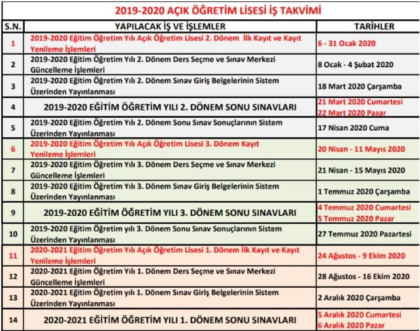 Açık Öğretim Lisesi 2. Dönem sınavları 21 Mart 2020 Cumartesi - 22 Mart 2020 Pazar günleri uygulanacak.