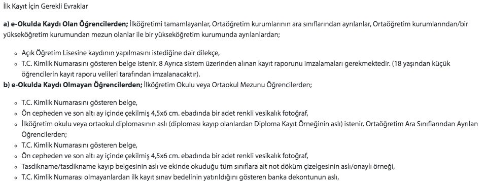 Şayet öğrencimiz Açık Öğretim Lisesinden Çıkma Belgesi almışsa Çıkma Belgesinin aslı ile başvurması gerekmektedir. Diplomayı öğrenci yerine bir başkası alacak ise bu kişinin noterden vekil tayin edilmesi gerekmektedir. Vekilin Noterden alınan vekâlet ve yukarıda belirtilen öğrencinin getirmesi gereken evraklardan biri ile başvurması gerekmektedir.