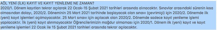 AÖO ve AÖL birinci dönem sınavları ne zaman?