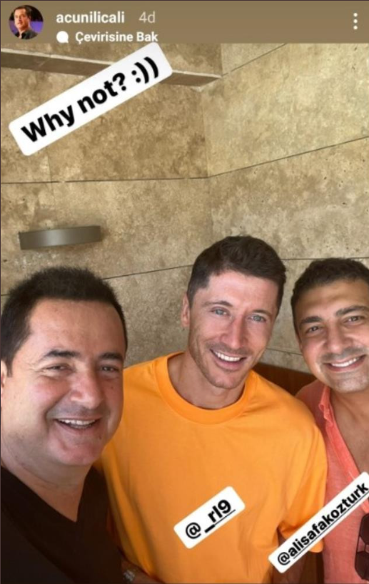 Bayern Münih'ten ayrılması beklenen Robert Lewandowski ile fotoğraf paylaşan Acun Ilıcalı, fotoğrafa "Neden olmasın?" notunu düştü.