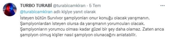 "Yılanın başı küçükken ezilsin" atasözünü hatırlatan ve engellenmesi gereken yarışmada Survivor'ı kazanan isimlerin onur konuğu olacağını söyleyen Çamkıran, paylaşımlarına şöyle devam etti: