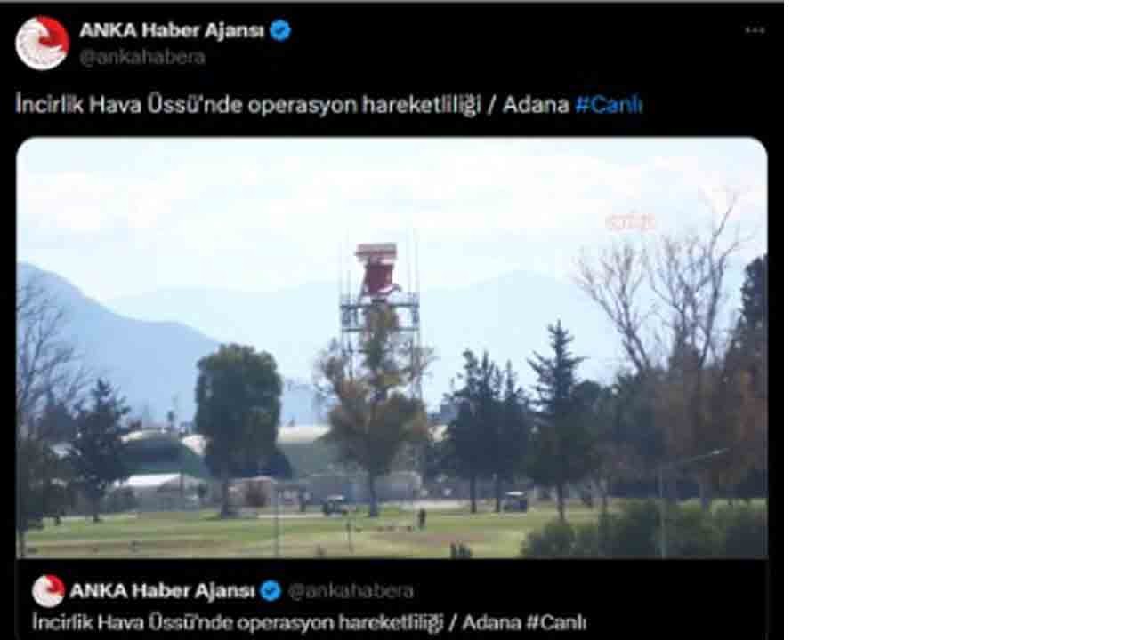 Adana Cumhuriyet Başsavcılığı İncirlik Hava Üssü’ne ilişkin görüntülerin ANKA Haber Ajansı tarafından canlı yayınlanmasına yönelik resen soruşturma başlattı.