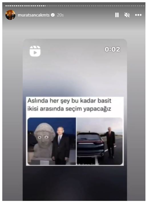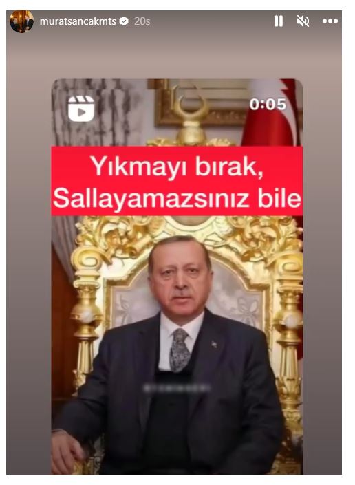 Erdoğan ile çektirdiği kareyi profil fotoğrafı yapan Sancak, bir sosyal medya kullanıcısının "Yıkmayı bırak sallayamazsınız" paylaşımını hikayesine ekledi.