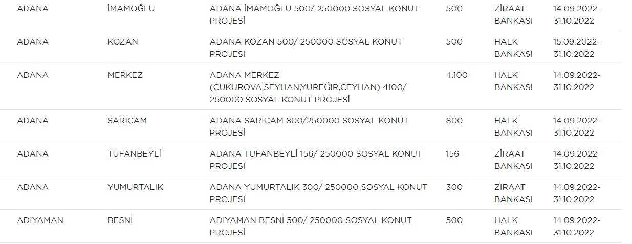 TOKİ sosyal konut projesi başvuruları 14 Eylül’de başladı. Vatandaşlar ise başvuru yapacakları illerin hangi ilçelerinde konut yapılacağını araştırıyor. Peki, TOKİ Adana projesi hangi ilçelerde yapılacak?