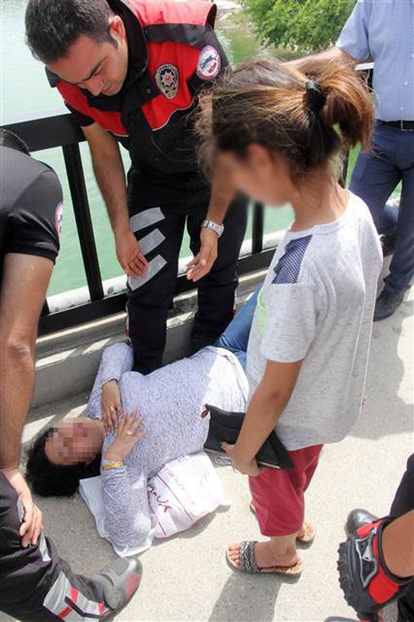 Bu sırada genç kadın atlamak için aşağı doğru hamle yaptığı sırada çocukları ve çevredeki vatandaşlar yetişerek genç kadını tutup aşağı çekti. Daha sonrada vatandaşlar polise ve sağlık ekiplerine haber verdi. Ancak genç kadını ikna etmek kolay olmadı. Genç kadın köprünün demir korkuluklarından tutarak ölmek istediğini ambulansa binmek istemediğini söyledi. Genç kadının şoka giren çocukları ise annelerinin ne yaptığını anlamaya çalışıp gözyaşlarını tutamadı.