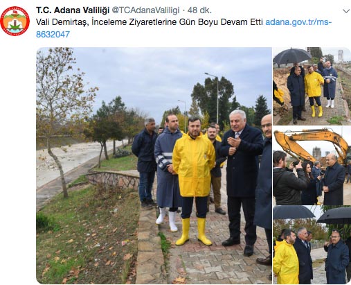 Adana Valiliği'nden yapılan açıklamada, "Meteoroloji tarafından ilimiz genelinde 23 Aralık'tan itibaren süren olumsuz hava koşulu ve yağışın etkisinin devam edeceği bildirildiğinden, 4 merkez ilçemizde (Seyhan, Çukurova, Yüreğir, Sarıçam) 25 Aralık çarşamba günü eğitim- öğretime 1 gün süreyle ara verilmiş olup, tüm kamu kurum ve kuruluşlarında görevli, engelli, hamile ve kronik hastalığı olan personel aynı tarihte izinli sayılacaktır." ifadeleri kullanıldı.