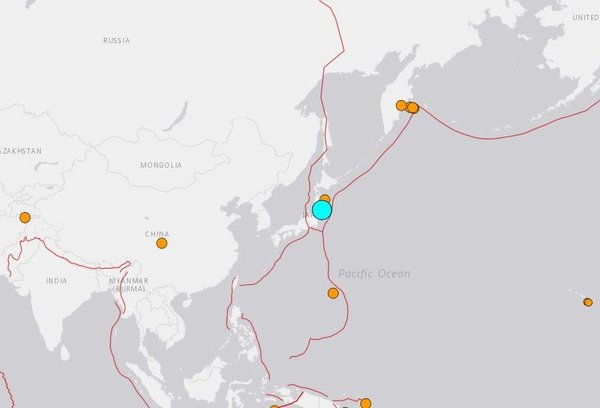 Japonya'nın kuzeydoğusunda bulunan Miyagi eyaletinde yerel saatle 18.09'da 7,2 şiddetinde deprem meydana geldi.