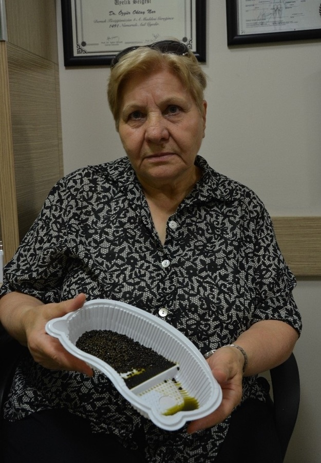 İlk defa safra kesesinde o kadar taş gördüğünü ifade eden Hayat Hastanesi Genel Cerrahi Uzmanı Opr. Dr. Servet Yetgin, “Ayfer hanım bize uzun yıllardır devam eden mide ağrısı şikayetiyle başvurdu. Bu şikayetlerle çeşitli defalar doktora gitmiş, ama bir teşhis konulamamış. Yaptığımız ultrason ile safra kesesinin taş ile dolu olduğunu gördük. Ameliyatı laparoskopik yöntemiyle yani kapalı şekilde gerçekleştirdik. Ameliyattan sonra safra kesesini açtığımızda hepimiz çok şaşırdık. Daha önce birçok safra kesesi ameliyatı yaptım. En fazla 8-10 tane taş ile karşılaşılır. 18 yıldır yaptığım ameliyatlar sonunda böyle bir safra kesesiyle karşılaşınca, üşenmeden taşları saydık. 3 bin 200 adet taş vardı. Bugün birinci haftasını geride bıraktı. Şikayetleri tamamen geçti” diye konuştu.