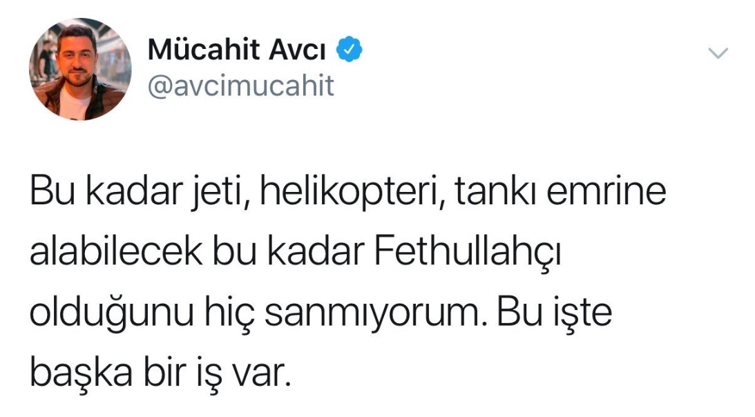 FETÖ'nün devleti ele geçirmeye çalıştığı 15 Temmuz gecesi camilerden ezan okunmasından rahatsız olan Avcı, yaptığı paylaşımların birinde "Camilerde ezan okunması cihat çağrısıdır. Türk halkı demokrasi savunucusudur, cihatçı değil. Cihat çağrısı en az darbe kadar yanlıştır." diyerek cihadı kötü göstererek vatandaşların sokağa inmesine engel olmaya çalıştı.