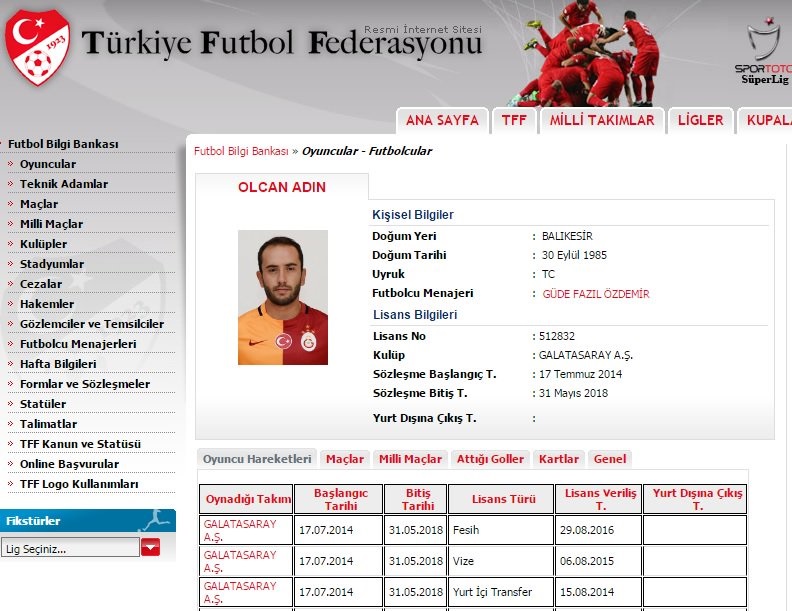 Galatasaray, iki sezon önce Trabzonspor'dan transfer ettiği Olcan Adın'ın sözleşmesini feshetti. Sarı kırmızılılar Olcan'ın sözleşmesi ile ilgili bilgiyi TFF'ye bildirdi.