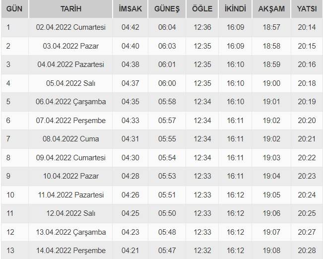 Adıyaman imsakiye güncel | Adıyaman 2022 imsakiye: