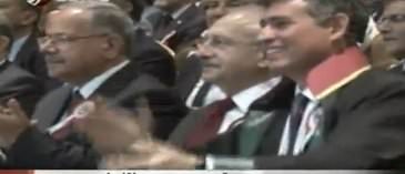Etkinliğe katılıp, Türkiye Barolar Birliği Başkanı Metin Feyzioğlu ile yan yana oturan Kemal Kılıçdaroğlu, göbek atanları alkışlayıp tempo tuttu.