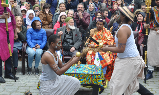 Öğrencilerin, Afrika'nın kralları ile ilgili gösterisi ise vatandaşlar tarafından beğeniyle izlendi.