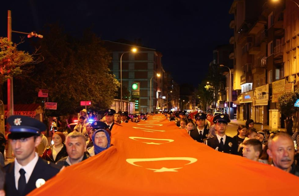 1000 metrelik ay yıldızlı Türk bayrağı eşliğinde düzenlenen yürüyüşe, Vali Yardımcısı İhsan Ayrancı, protokol üyeleri, vatandaşlar ve gençler katıldı.