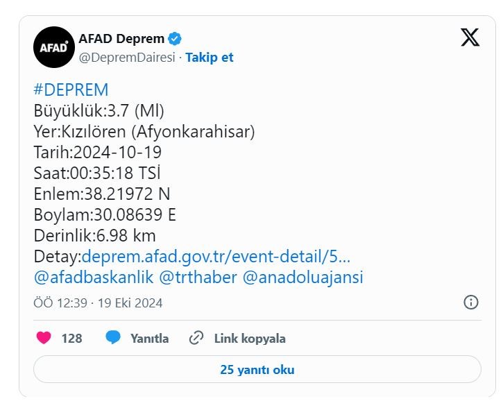 AFAD duyurdu! Afyonkarahisar'da 3.7 büyüklüğünde korkutan deprem! Deprem çevre illerden de hissedildi.