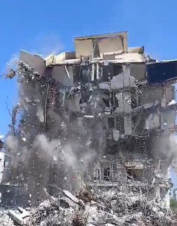 Yıkımı gerçekleştiren Ferhat Çelik,’’ Depremde ağır hasar görmüş bir binanın şu anda yıkımını gerçekleştiriyoruz. Bina zaten çok ağır hasarlı bir binaydı, kontrolü bir şekilde yaptık. Sizin de arkamda görmüş olduğunuz 34 metre uzunluğunda kesme makinemizle aynı şekilde kesimini yaptık. İskenderun’da, Hatay’da bu bölgede bu binayı yıkacak olan 4-5 tane firma gelip de bu binayı üstelenmediler, yıkamadılar.