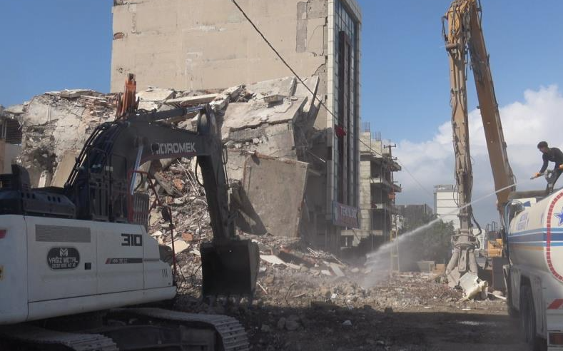 Asrın felaketinde hasar alan ve mahkeme süreci devam eden binaların il genelinde yıkımları sürüyor. İskenderun ilçesi İbrahim Karaoğlan Caddesi üzerinde yer alan 7 katlı binada depremde hasar görmüştü. Mahkeme süreci sona eren 7 katlı binanın iş makinasıyla kontrollü yıkımına başlanmıştı. Binanın iş makinasının son darbesiyle yerle bir olduğu kareler an be an kaydedildi. Görüntülerde; iş makinasının kolona dokunmasıyla 7 katlı binanın yerle bir olduğu görüldü. Yıkım herhangi bir sorun yaşanmadan son bulurken moloz kaldırma çalışmaları devam ediyor.