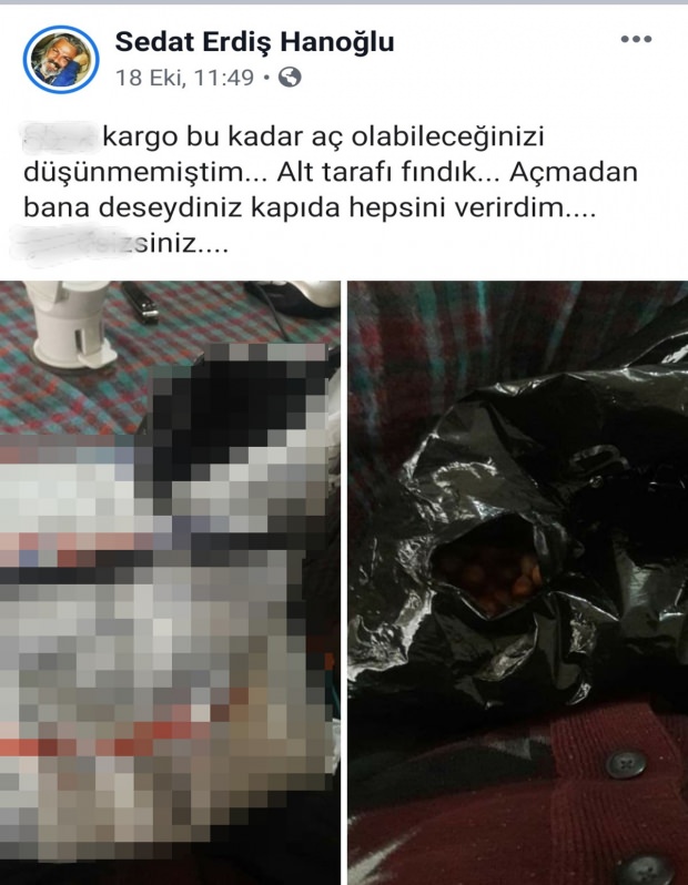 Erdiş, yaşanan olaya sosyal medyaya hesabı üzerinden fotoğrafları paylaşıp tepki gösterdi. Sedat Erdiş. ".... Kargo bu kadar aç olabileceğinizi düşünmemiştim. Alt tarafı fındık. Açmadan bana deseydiniz kapıda hepsini verirdim. Ş...siniz" sözleriyle tepkisini dile getirdi.