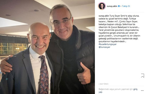 Sunay Akın ve Nebil Özgentürk’ün CHP’ye açık desteği biliniyor. Özellikle Sunay Akın, CHP’li Tunç Soyer’in seçilmesi için sosyal medyadan büyük çalışma yürüttü.