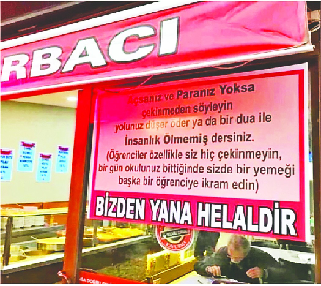 Aynı hassasiyetle bir çorbacının dükkanına astığı duyurudan verilen ders, belki de öğrencilerin okulda hiç göremeyecekleri bir üst seviyede..