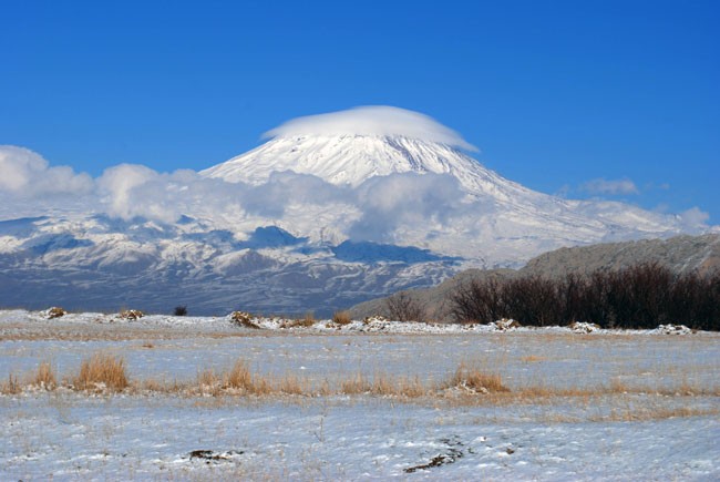 Türkiye'nin en yüksek dağı olan Ağrı Dağı'nın zirvesinde oluşan dairesel şekil adeta şapkayı andırdı. Ağrı Dağı'nın bulutların altında kalan görünümü karşısında Ağrılılar, "Ağrı Dağı yine takkesini taktı" yorumunda bulundu.