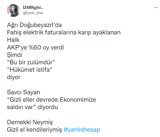 31 Mart seçiminde yüzde 70'e yakın oy alan HDP yönetimindeki Ağrı Doğubeyazıt ilçesinde, "elektrik faturası" provokasyonu yapıldı. HDP Doğubeyazıt İlçe Örgütü'nün düzenlediği öğrenilen sokak eylemi, "AK Parti'nin en çok il aldığı Ağrı'da halk ayaklandı." ifadeleri ile yayılarak algı yapılmaya çalışıldı.