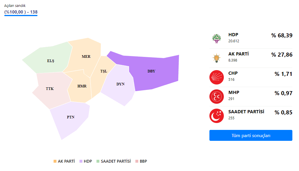 31 Mart seçiminde HDP Doğubeyazıtlıların yüzde 70'e yakın oyunu alarak seçimi kazandı.