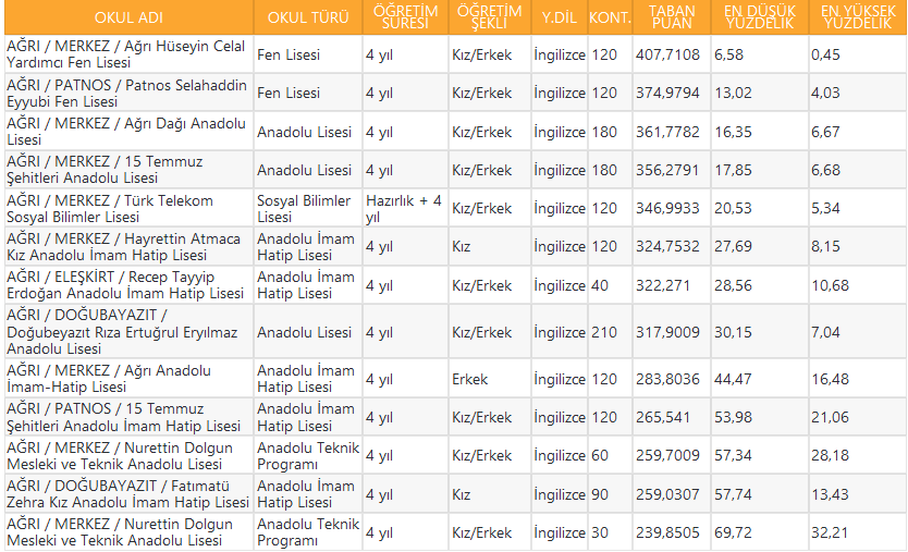 Ağrı liseleri taban puanı 2021 Ağrı liseleri başarı sıralaması |Ağrı liseleri kontenjanları