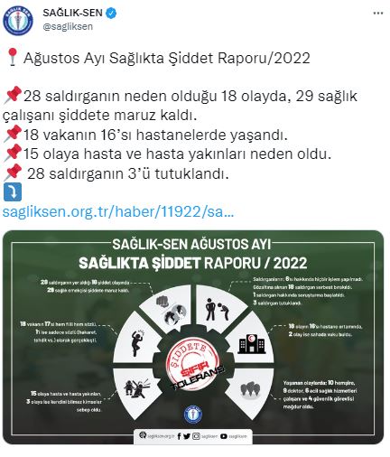 Sağlık-Sen Genel Başkanı Semih Durmuş, “Ağustos Ayı Sağlıkta Şiddet Raporu”nu kamuoyuyla paylaştı.