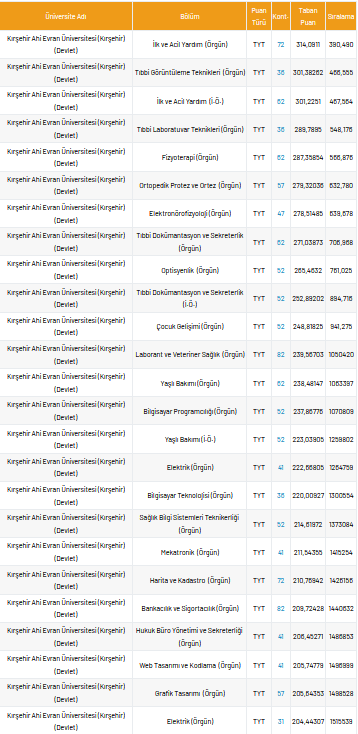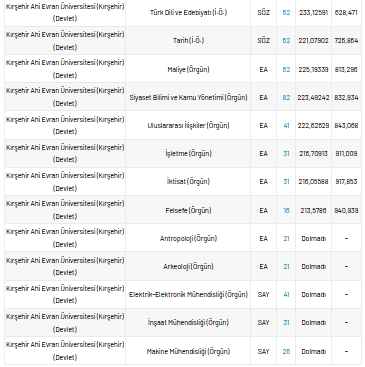 Ahi Evran Üniversitesi 2021 taban puanları ve yüzdelik dilimleri nelerdir?
