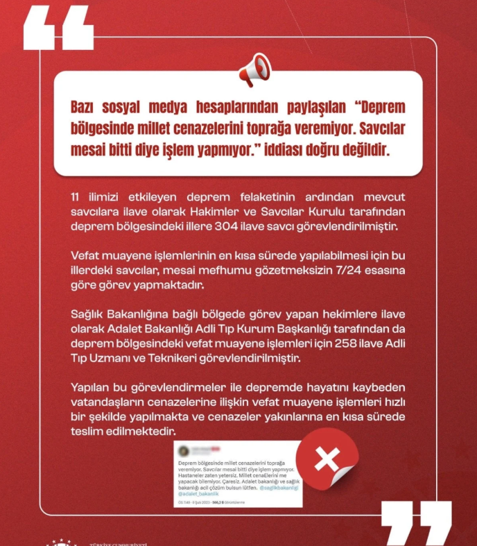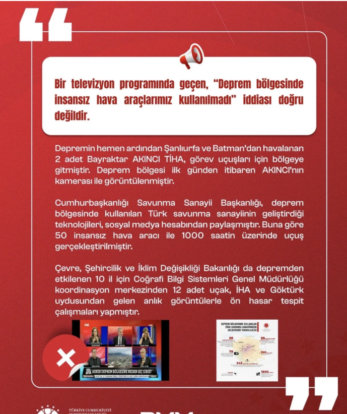 Bu yalanlarla başta T.C. İletişim Başkanlığı Dezenformasyonla Mücadele Merkezi olmak üzere ciddi bir mücadele yürütüldü.