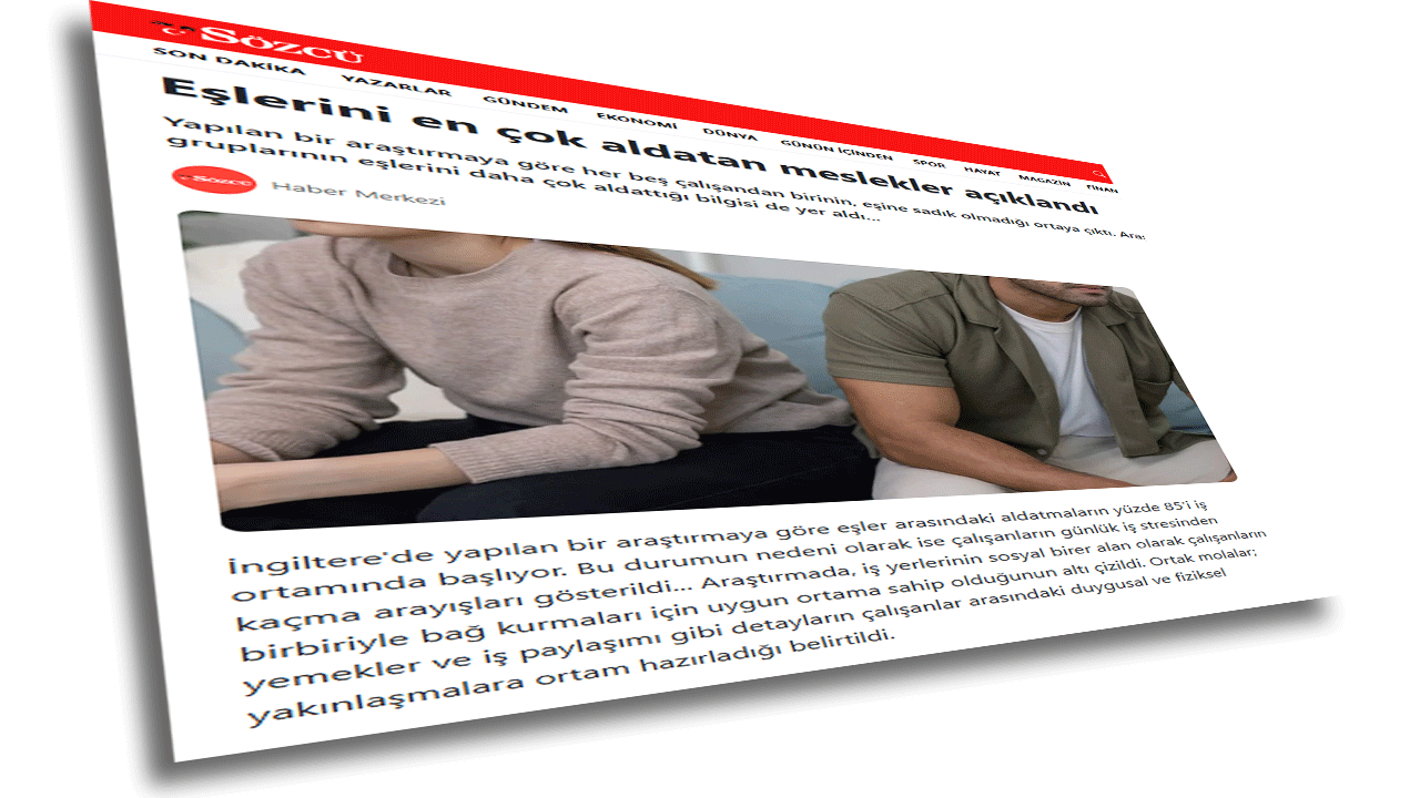 Aynı gün içerisinde Sözcü Gazetesi, “Eşlerini en çok aldatan meslekler açıklandı” başlığıyla yayınladığı bir başka haberde, sözde bilimsel bir veri üzerinden kadın ve erkekleri iş ortamlarında aldatmaya nasıl meylettiklerini gözler önüne serdi. Haberde, aldatmanın sebeplerini detaylandırma kisvesi altında; aile kurumunu zedeleyen, sadakati değersizleştiren ve adeta aldatmayı normalleştiren satırlarla toplum ahlakını hedef aldılar.