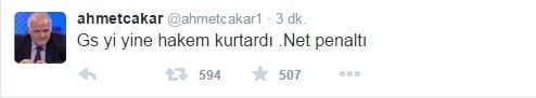 Spor yorumcusu ve eski hakem Ahmet Çakar, Trabzonspor-Galatasaray maçı devam ederken şok bir tweet attı.