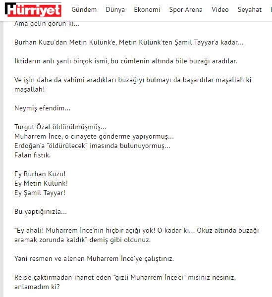 “Ey ahali! Muharrem İnce’nin hiçbir açığı yok! O kadar ki... Öküz altında buzağı aramak zorunda kaldık” demiş gibi oldunuz.