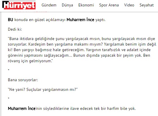(…) BU konuda en güzel açıklamayı Muharrem İnce yaptı.