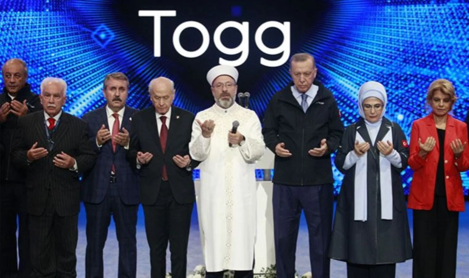 "Doğu Perinçek, TOGG töreninde yapılan duaya eşlik etmiş.