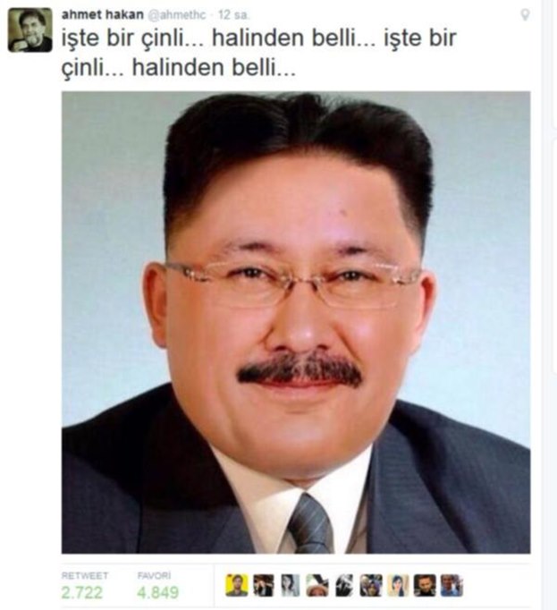 Ahmet Hakan, Ankara Büyükşehir Belediye Başkanı Melih Gökçek'in resmine Kuzey Kore diktatörü Kim Jong'un saçlarını photoshopla monte ederek "işte bir Çinli. Halinden belli. İşte bir Çinli. Halinden belli" ifadelerini kullandı